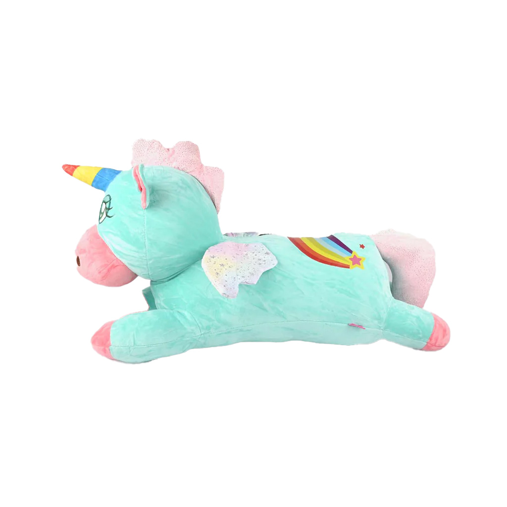 Unicornul de pluș XXL este o jucărie moale, pufoasă și extrem de adorabilă, perfectă pentru copii de toate vârstele. Designul colorat, cu aripi strălucitoare, coadă curcubeu și corn multicolor, îl transformă într-un companion magic pentru joacă și somn.
